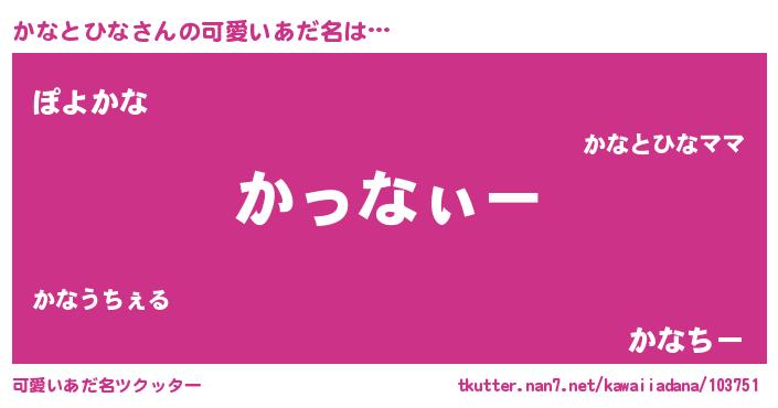 | 男性向けラノベタイトル風あだ名 | 『かなとひなの嫁は女の子じゃないと思った?』 |