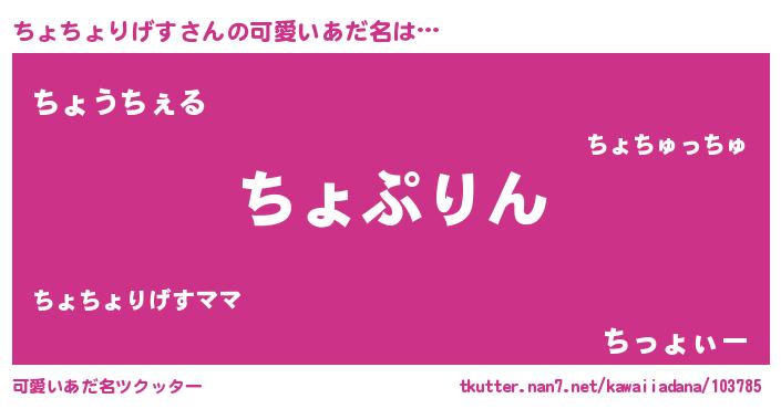 | 男性向けラノベタイトル風あだ名 | 『ちょちょりげす~年齢イコール彼女いない歴の魔法使い~』 |