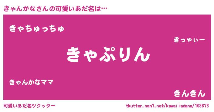 | 男性向けラノベタイトル風あだ名 | 『転生したらきゃんかなだった件』 |