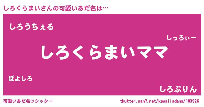| 意味不明あだ名 | 『永久保存しろくらまい』 |