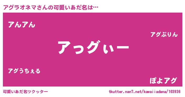 | 意味不明あだ名 | 『とにかく怪しいアグラオネマ』 |