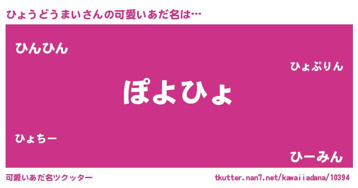 | 恥ずかしいあだ名 | 『プリティーひょうどうまい』『ひょちん』 |