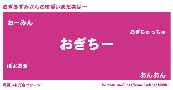 | 女子向けラノベタイトル風あだ名 | 『おぎあずみの雑貨屋さん』 |
