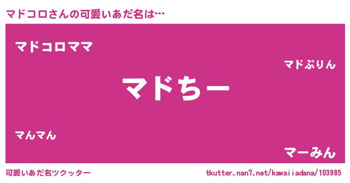| 女子向けラノベタイトル風あだ名 | 『マドコロの雑貨屋さん』 |