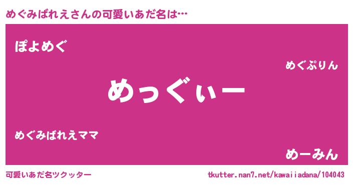 | 恥ずかしいあだ名 | 『メグリンリン』『めぐちん』 |