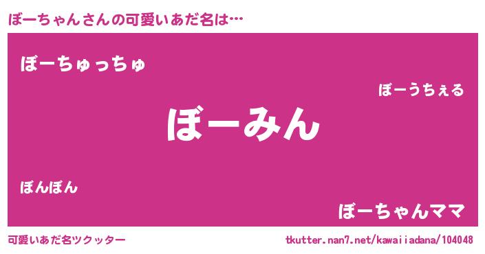 | ヒーロー風カッコイイあだ名 | 『慈愛の使者ぼーちゃん』『銀牙騎士ボー』 |