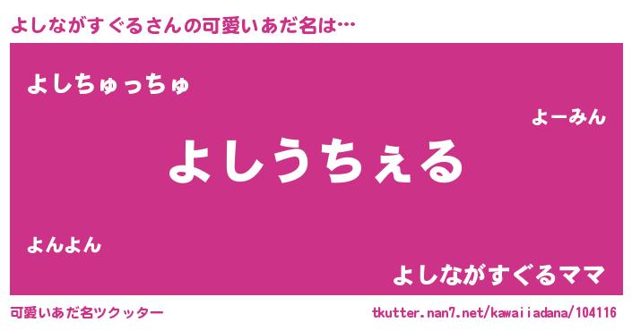 | ヘコむあだ名 | 『よしながすぐる(震え声)』『よしっふぃ~』 |