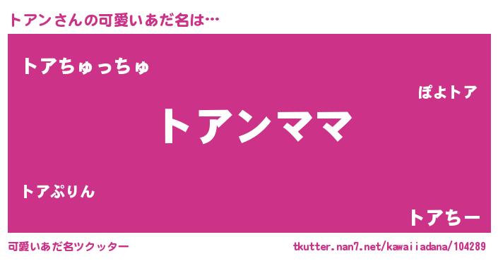 | ヘコむあだ名 | 『トアン(笑)』『豆乳』『トアふぇ~』 |
