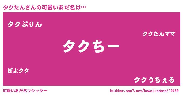 | 恥ずかしいあだ名 | 『タクっちょ』『タクタンデラックス』 |