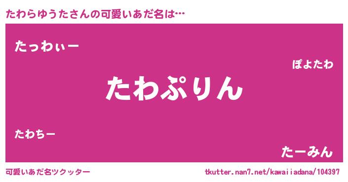 | ポケモン風あだ名 | 『タワキング』『ヒタワラユウタ』 |