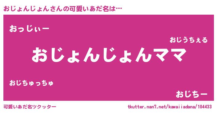 | 男性向けラノベタイトル風あだ名 | 『おじょんじょんという概念が存在しない退屈な世界 』 |
