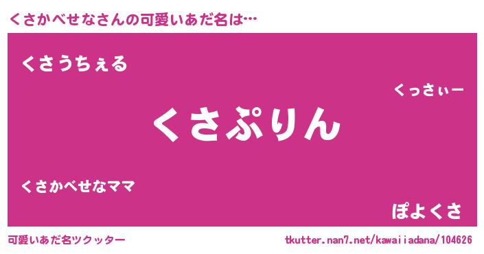 | ヘコむあだ名 | 『くさっ子』『くさかべせな(苦笑)』 |