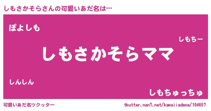 | ヘコむあだ名 | 『しもさかそら(笑)』『酢こんぶ』 |