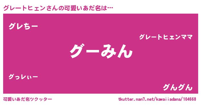 | 意味不明あだ名 | 『グレートヒェンフォーエバー』 |