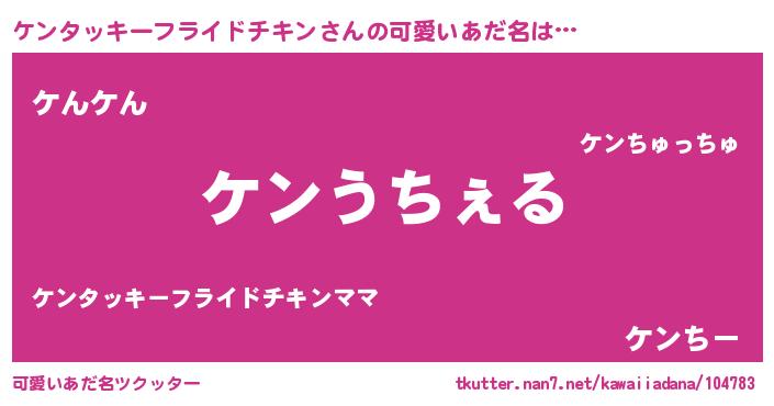 | 女子向けラノベタイトル風あだ名 | 『ケンタッキーフライドチキンなんてお断りですっ。』 |
