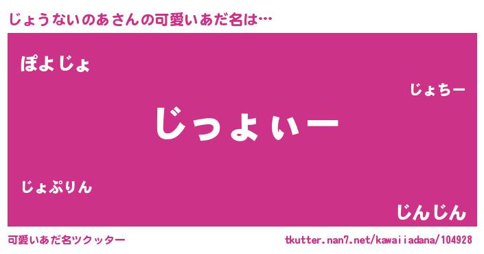| 男性向けラノベタイトル風あだ名 | 『じょうないのあの嫁は女の子じゃないと思った?』 |
