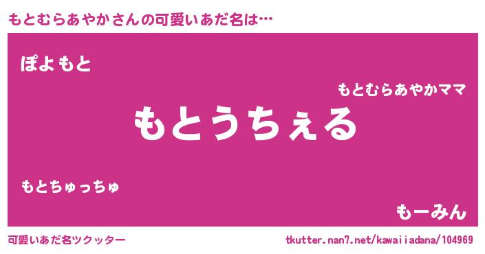 | 男性向けラノベタイトル風あだ名 | 『Re:もとむらあやかから始める異世界生活』 |