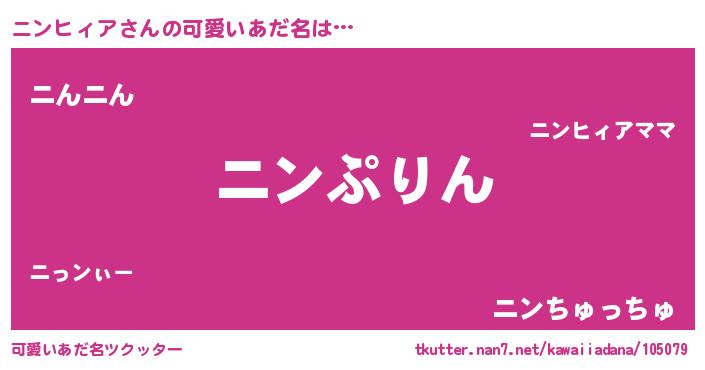 | ヘコむあだ名 | 『ニンにー』『ニンヒィア(遠い目)』 |