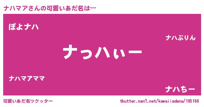 | ポケモン風あだ名 | 『ヒナハマア』『ナーハイ』 |