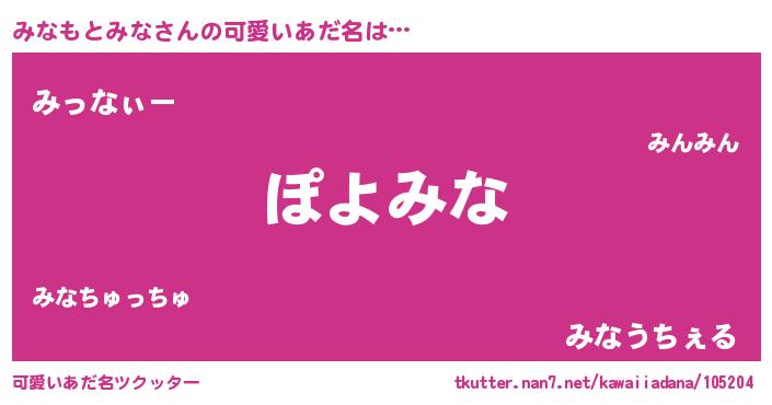 | ヘコむあだ名 | 『みなを』『みなふぇ~』『豆乳』 |