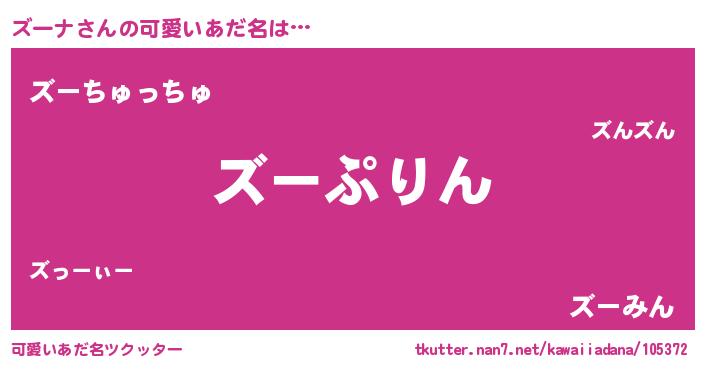 | ヒーロー風カッコイイあだ名 | 『慈愛の使者ズーナ』『スーパーズーナ』 |
