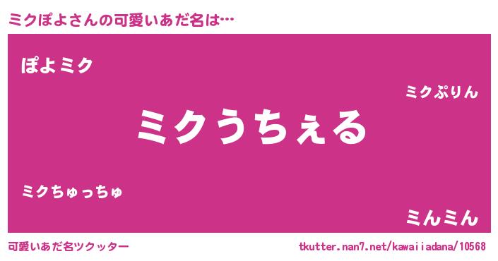 | 欧米人風あだ名 | 『ケンブリッジミクぽよ』 |