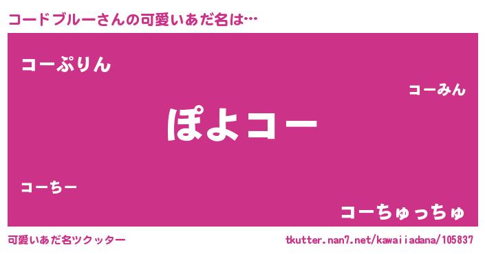 | 男性向けラノベタイトル風あだ名 | 『この素晴らしい世界にコードブルーを!』 |
