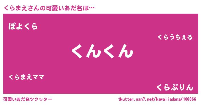| 恥ずかしいあだ名 | 『プリティーくらまえ』『くらちん』 |
