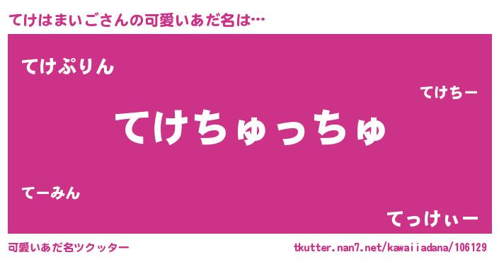 | ヘコむあだ名 | 『てけ太郎』『豆乳』『てけふぇ~』 |