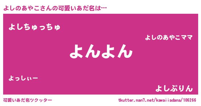 | 恥ずかしいあだ名 | 『プリティーよしのあやこ』『よしちん』 |
