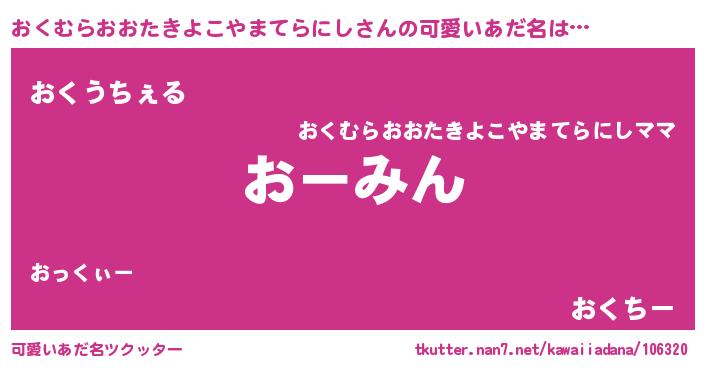 | 意味不明あだ名 | 『自称おくむらおおたきよこやまてらにし』 |