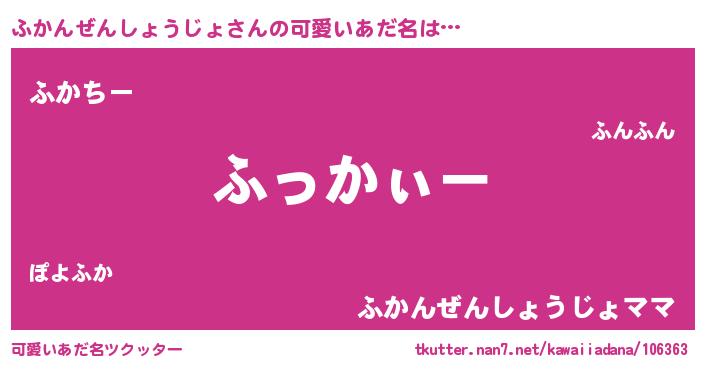 | ポケモン風あだ名 | 『ヒフカンゼンショウジョ』『フカンダネ』 |