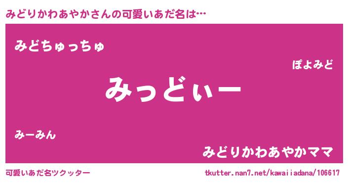 | ヘコむあだ名 | 『みど太郎』『みどりかわあやか(爆)』 |