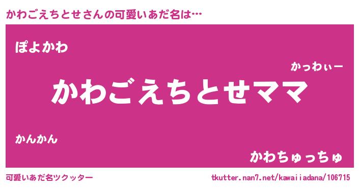 | 意味不明あだ名 | 『永久保存かわごえちとせ』 |