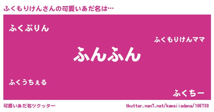 | 男性向けラノベタイトル風あだ名 | 『ふくもりけんの憂鬱』 |
