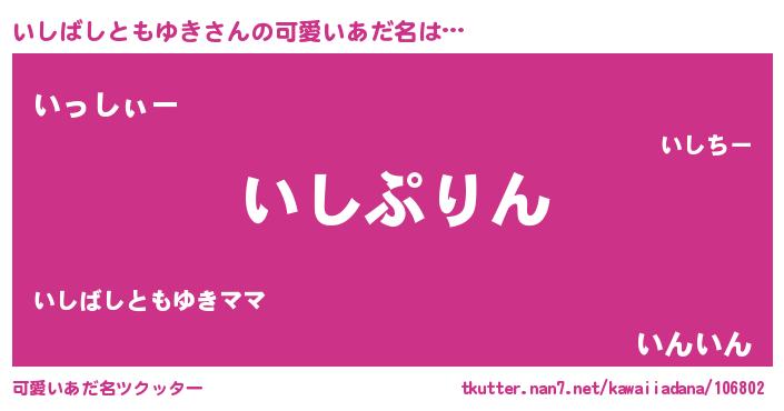 | 女子向けラノベタイトル風あだ名 | 『いしばしともゆきの玉の輿計画!』 |