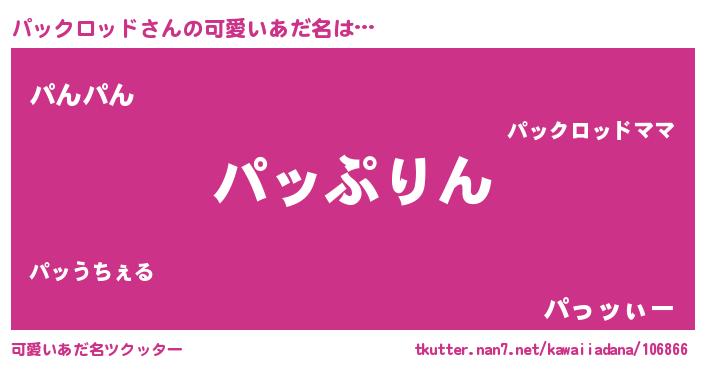 | ヒーロー風カッコイイあだ名 | 『スーパーパックロッド』『天弓騎士パッ』 |