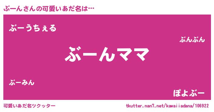 | 意味不明あだ名 | 『永久保存ぶーん』『自称ぶーん』 |