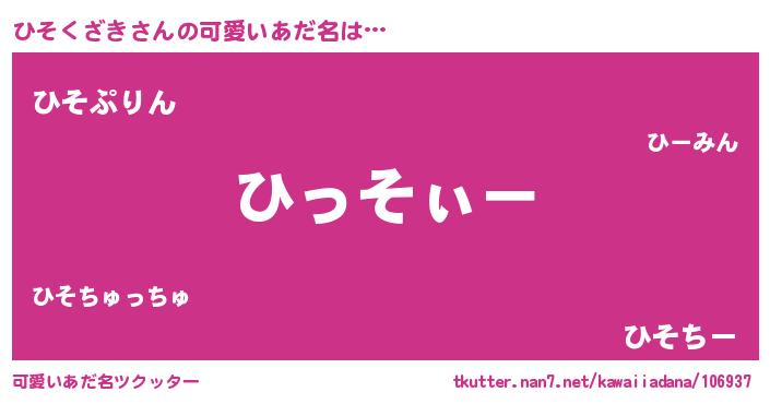 | ポケモン風あだ名 | 『ヒヒソクザキ』『ヒソキング』 |