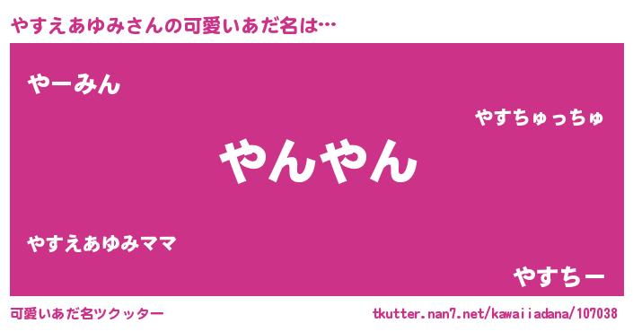 | 男性向けラノベタイトル風あだ名 | 『やすえあゆみの憂鬱』 |