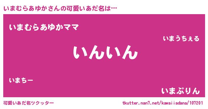 | 恥ずかしいあだ名 | 『プリティーいまむらあゆか』『いまちん』 |