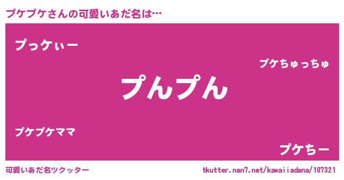 | 意味不明あだ名 | 『ペロリンプケプケ』『永久保存プケプケ』 |