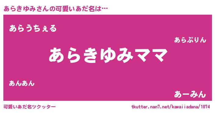 | ヘコむあだ名 | 『あらきゆみ(爆)』『あらふぇ~』 |