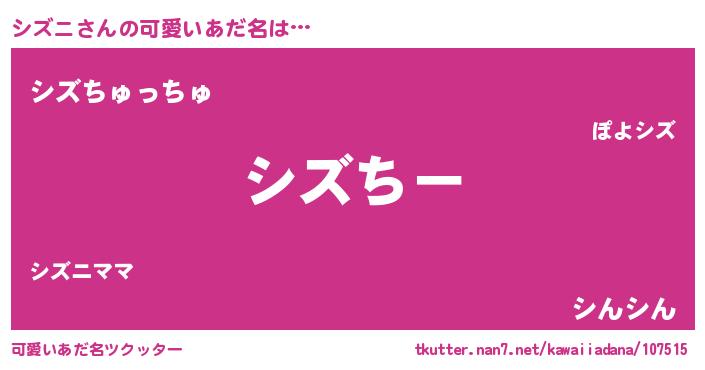 | 意味不明あだ名 | 『シズニフォーエバー』『ペロリンシズニ』 |