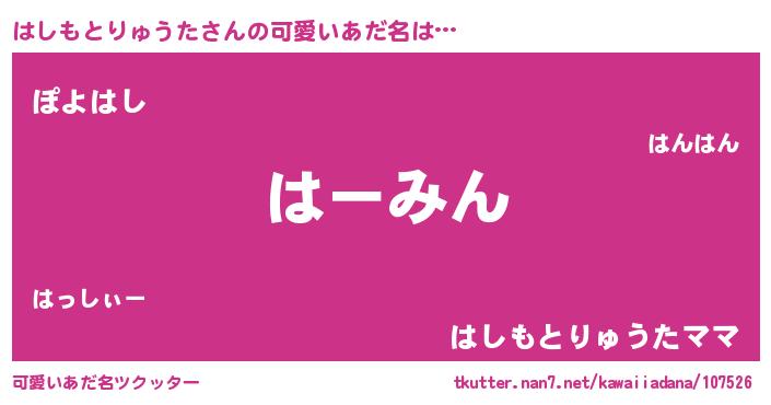 | 意味不明あだ名 | 『住所不定無職はしもとりゅうた(86歳)』 |