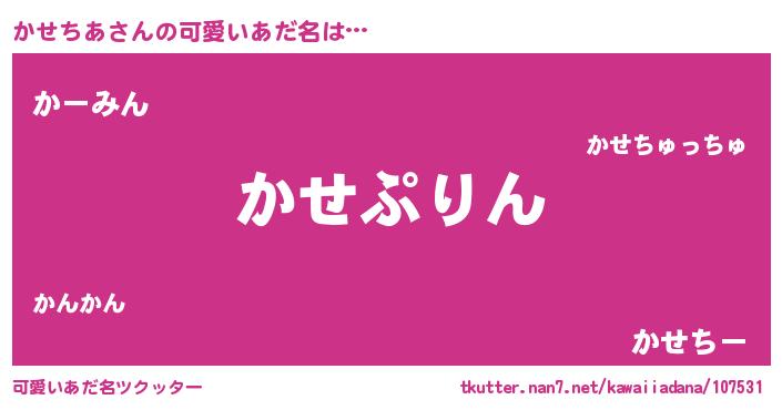 | 女子向けラノベタイトル風あだ名 | 『かせちあの玉の輿計画!』 |