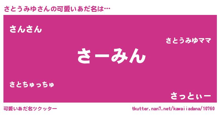 | 恥ずかしいあだ名 | 『プリティーさとうみゆ』『サトリンリン』 |