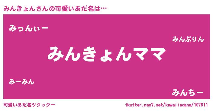 | 意味不明あだ名 | 『永久保存みんきょん』『自称みんきょん』 |