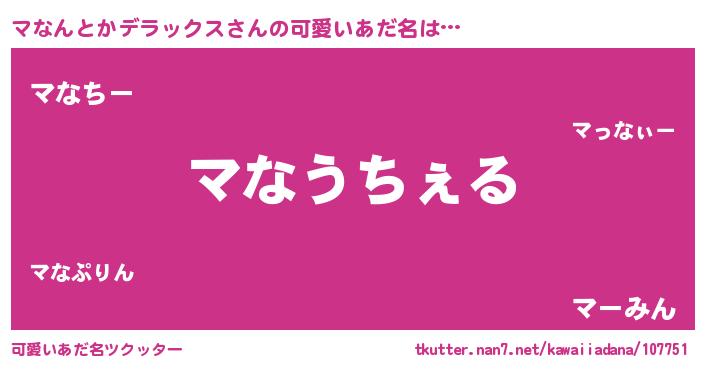 | 男性向けラノベタイトル風あだ名 | 『Re:マなんとかデラックスから始める異世界生活』 |