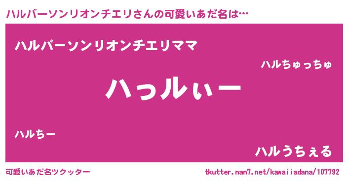 | 男性向けラノベタイトル風あだ名 | 『ハルバーソンリオンチエリの嫁は女の子じゃないと思った?』 |